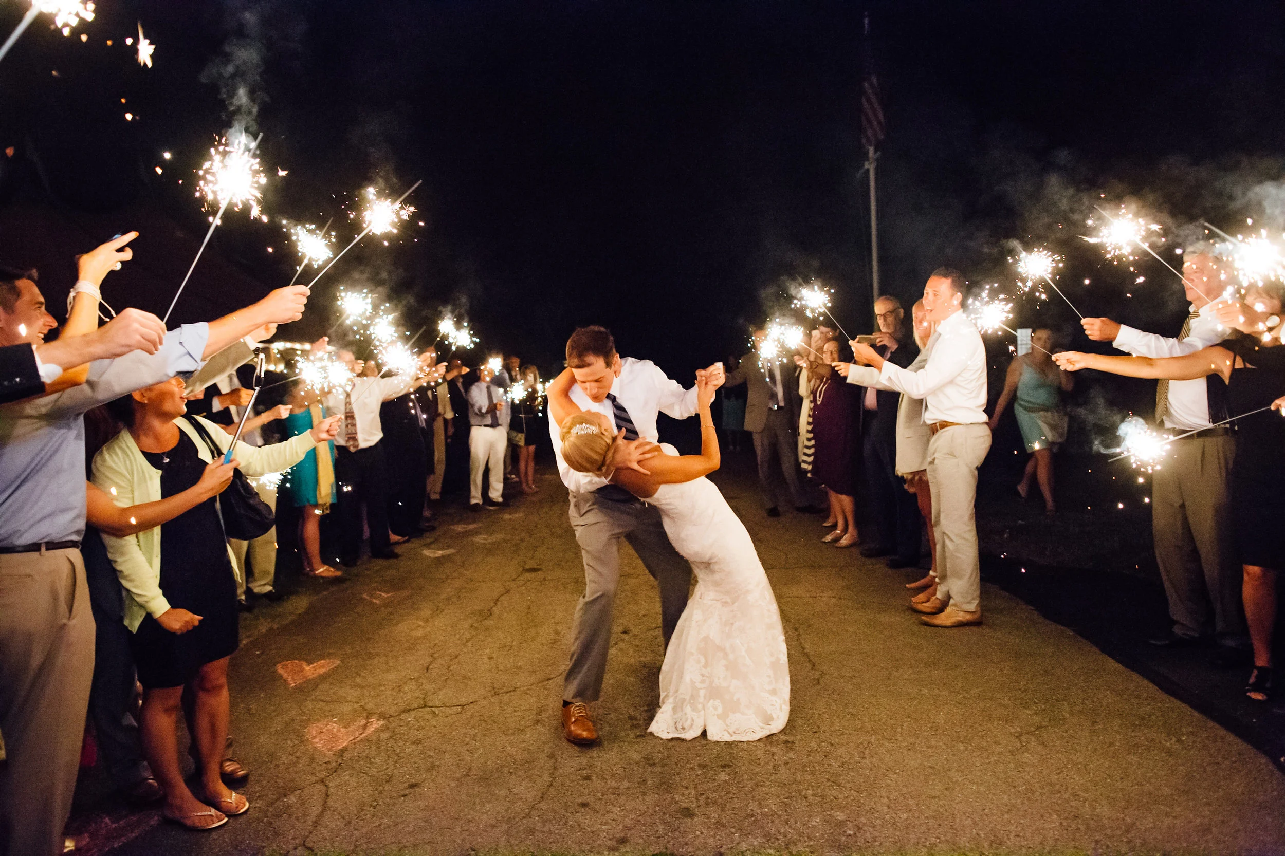 And for a slam bang finish Caroline and Dave ran off to their after party through a sparkler tunnel down their private lane.